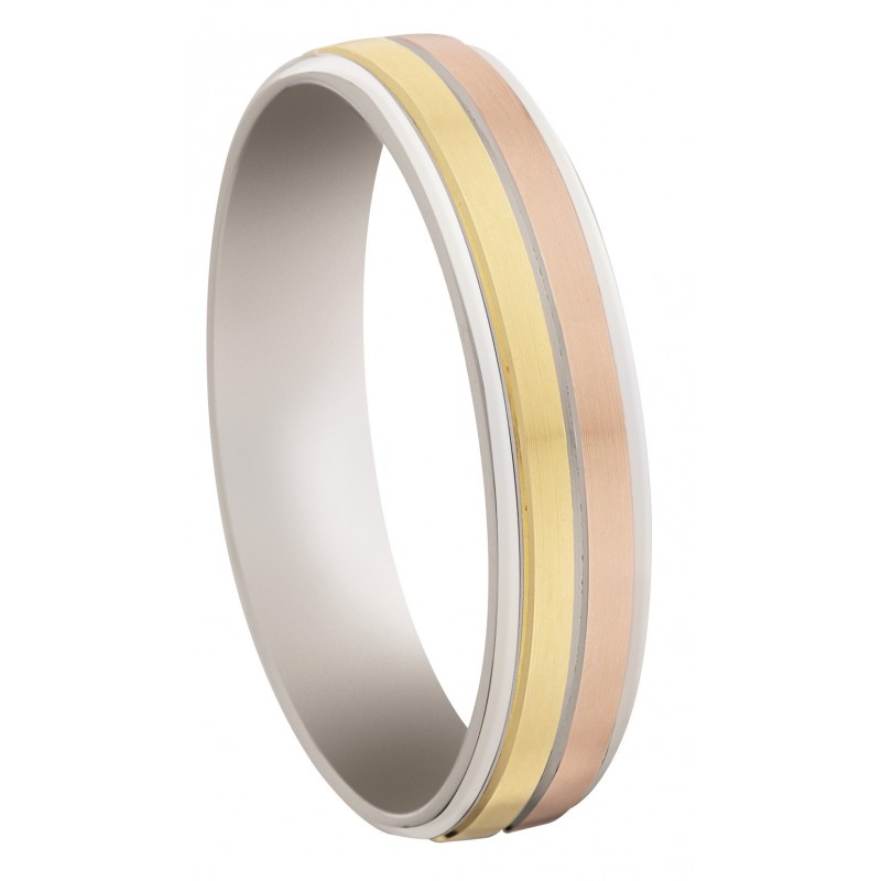 Une sublime alliance de mariage en or jaune, blanc et rose.