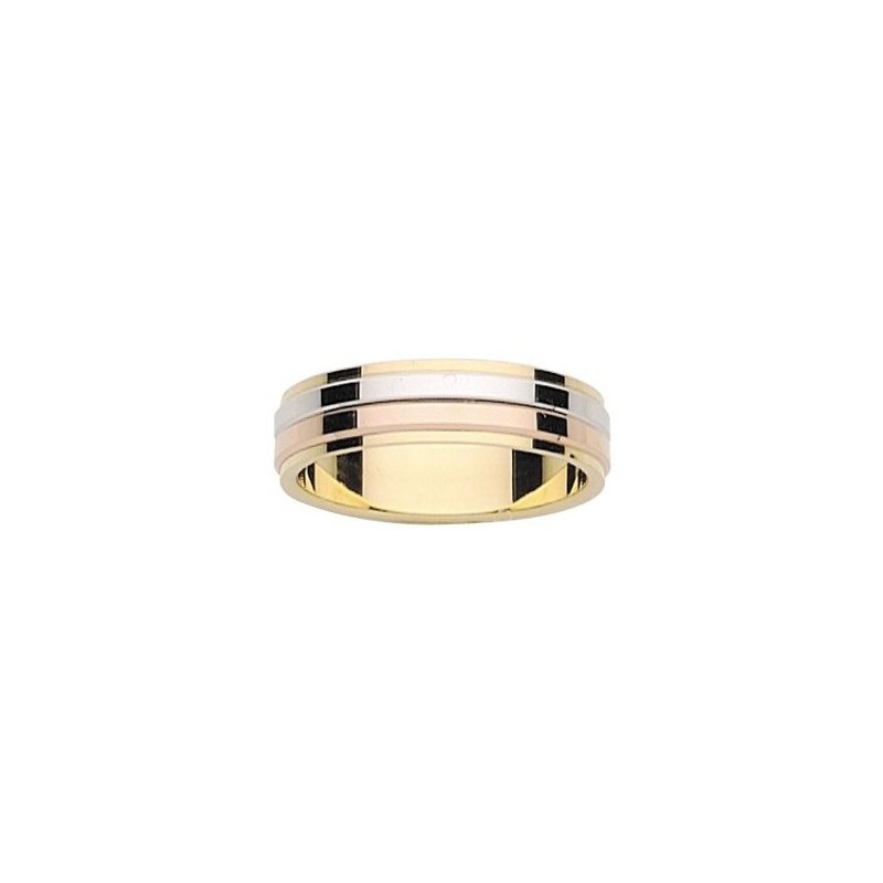 Alliances & Créations vous présente une bague de mariage tricolore en or jaune, blanc, et rose. Toutes nos bagues sont disponibles avec ou sans diamants, avec de l'or blanc, rose, ou jaune.