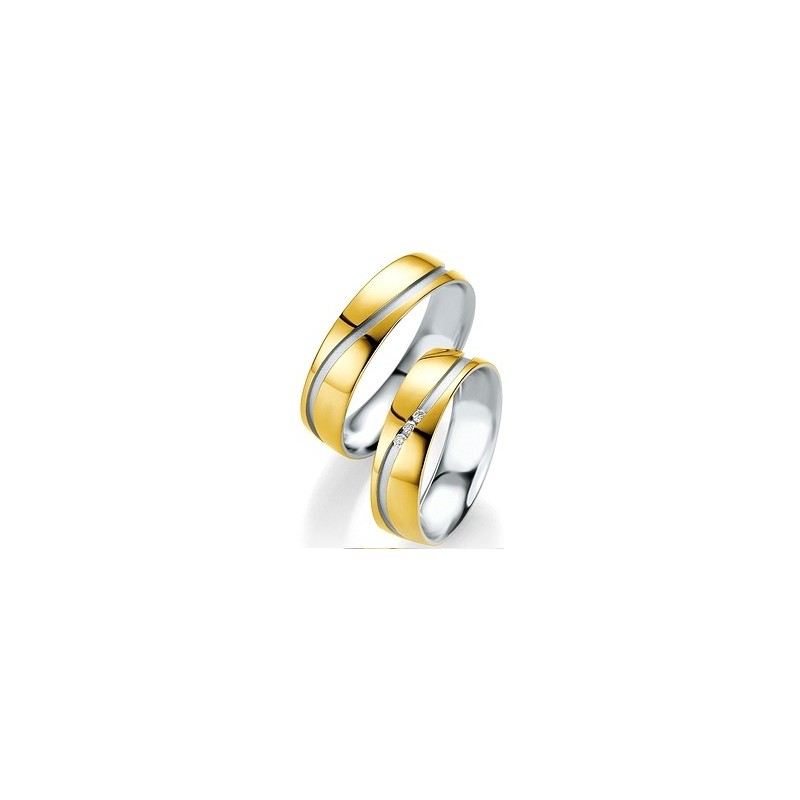 Cette alliance de mariage est en or jaune avec de l'argent, et une ligne centrale.
