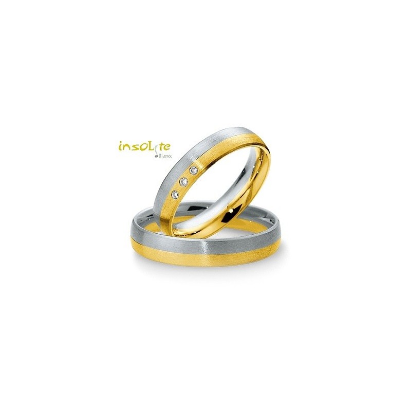 - Alliance or jaune et or blanc satiné 18 carats 750/1000 et 3 diamants