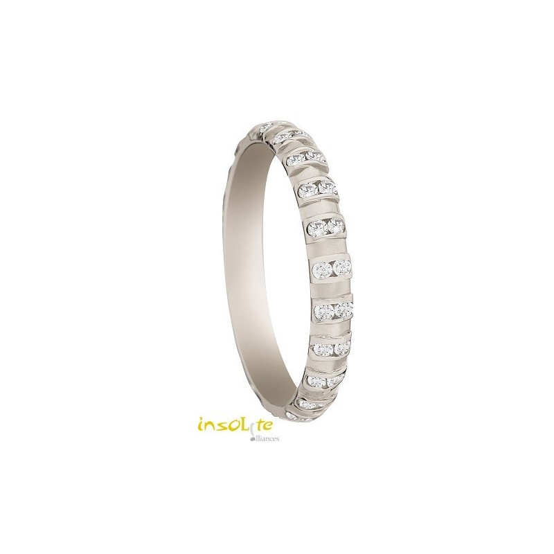 Pour le jour de votre union, choisissez une alliance de mariage en or blanc, avec des rangées de deux diamants disposé perpendiculairement à l'alliance, 48 diamants sont disposé sur l'anneau en or blanc.