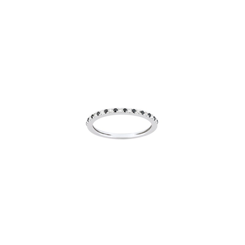 - Alliance or blanc 18 carats 750/1000 demi tour 23 diamants noirs et blancs 0.18 carats