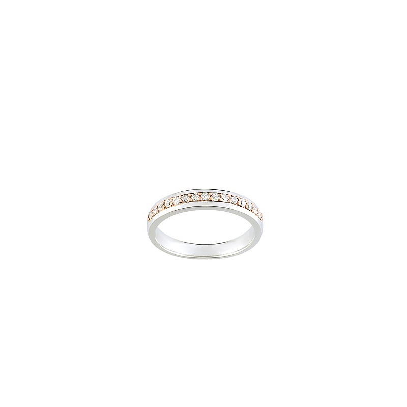 - Alliance or blanc 18 carats 750/1000 et diamants 0.22 carats sertis grains or rose