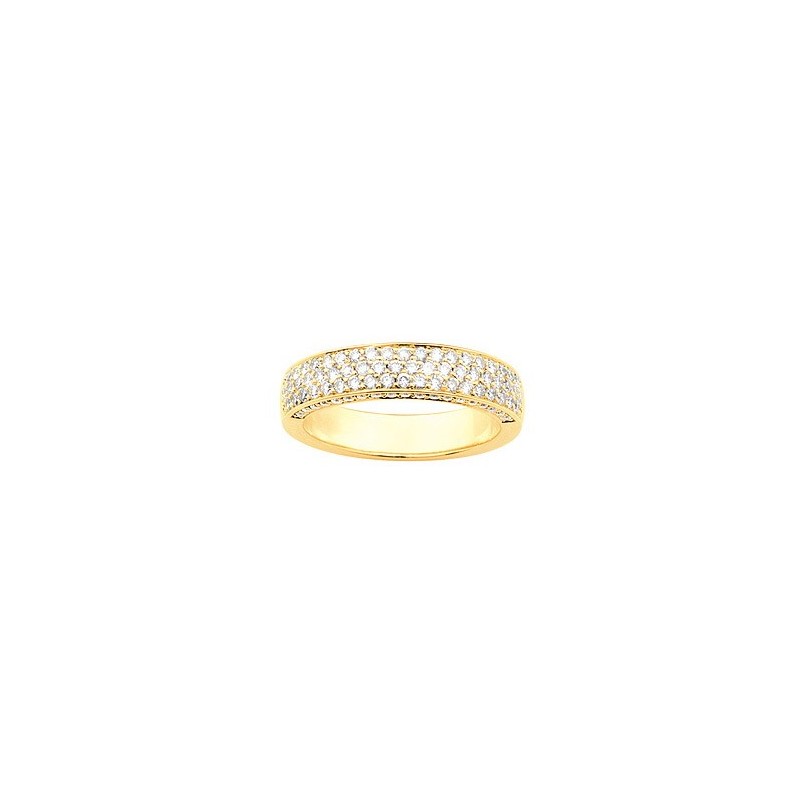 - Alliance or jaune 18 carats 750/1000 et pavage diamants 0.77 carats sertis grains sur 3 rangs