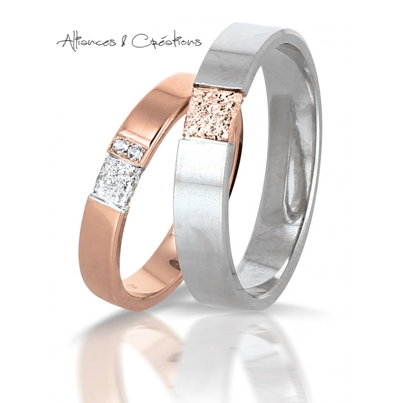 - Alliance de mariage or blanc/or rose 18 carats 750/1000 et