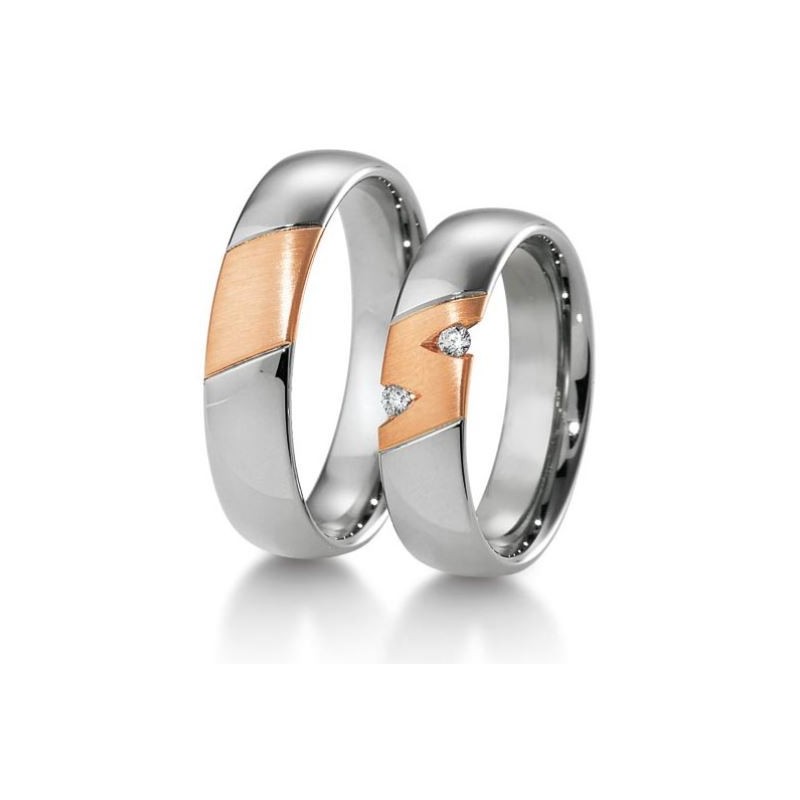Alliances & Créations vous présente un duo d'alliances de mariage, en or blanc, avec sur les côtés de l'or jaune. Nos bagues sont entièrement personnalisables, du choix du métal, ou des pierres précieuses, à la forme et la taille de l'anneau.