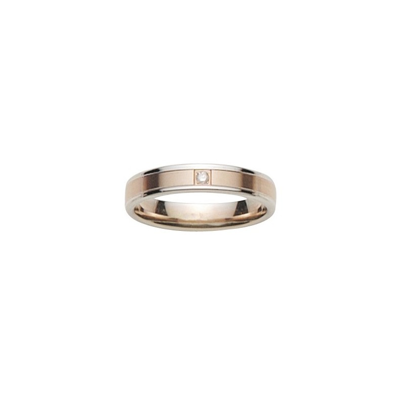 - Alliance bague or rose et bords or blanc 9 carats 3750/1000 et diamant 0.03 carats recoupe carréé
