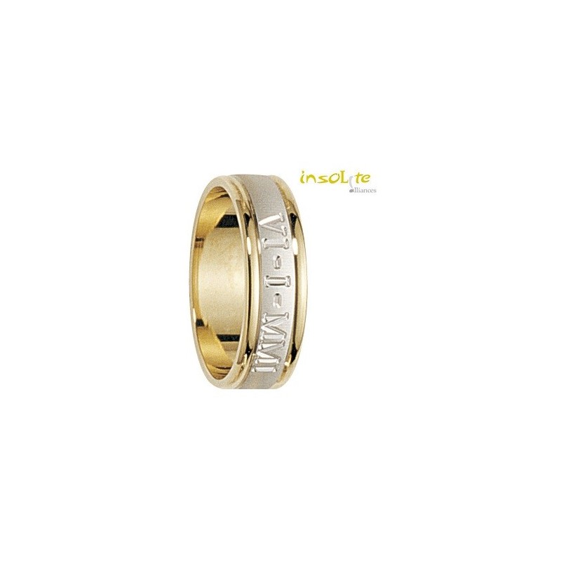 - Alliance bague or blanc or jaune 9 carats 375/1000 mat et brillant gravure extérieure romaine