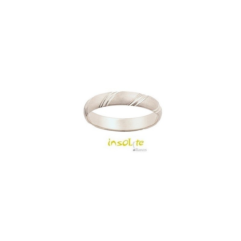 Laissez-vous tenter par cette alliance de mariage en or blanc, avec des rainures qui traversent l'anneau en diagonale.
