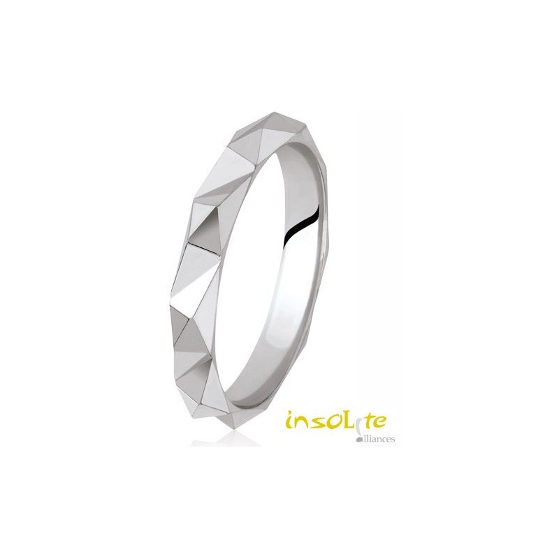 Une splendide alliance de mariage tendance et innovante en or blanc, avec un effet facetté.