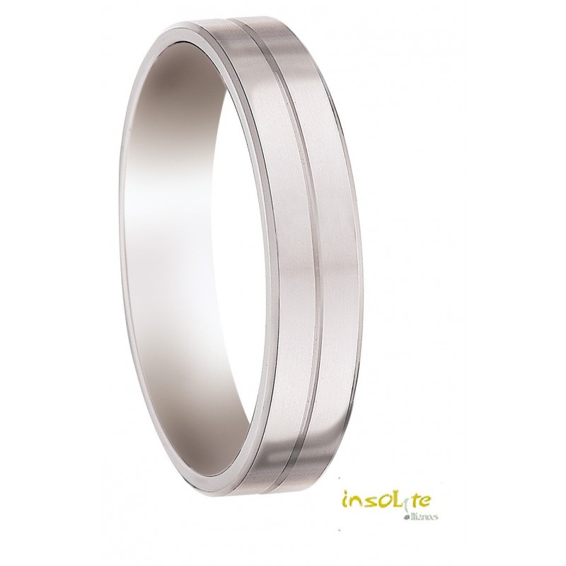 - Alliance bague homme or blanc 18 carats 750/1000 satiné et ligne brillante au milieu