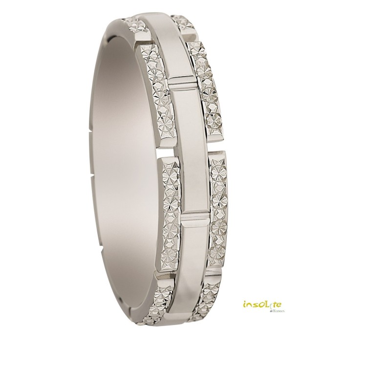 Alliance Or blanc palladié 9 carats 750/1000 - Finition polie -Effet diamanté- Créateur pfertzel Fairbelle Label joaillerie de France