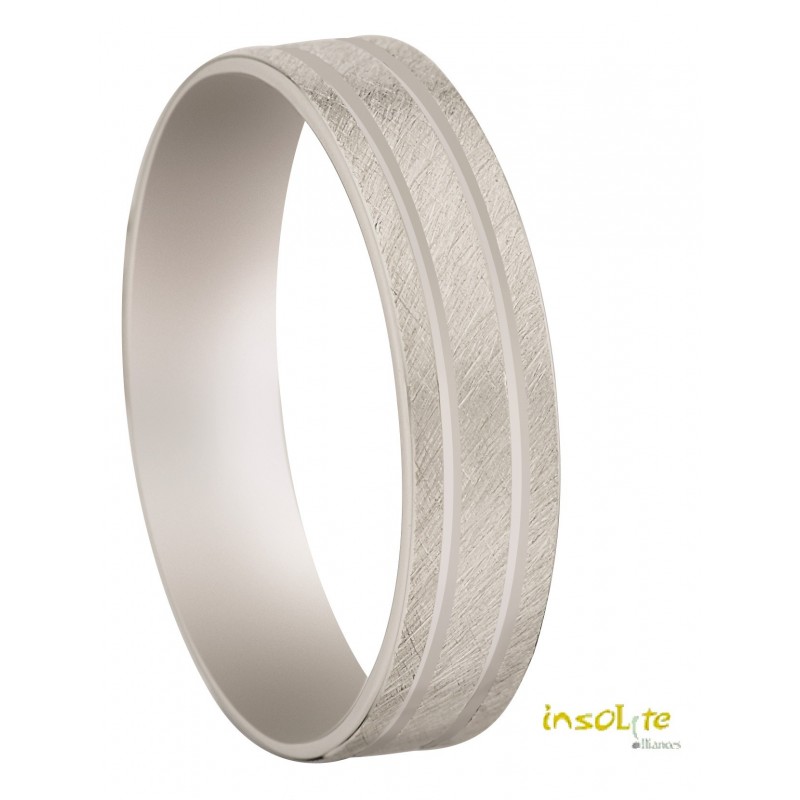 - Alliance bague homme or blanc 9 carats 375/1000 brossé et 2 lignes circulaires