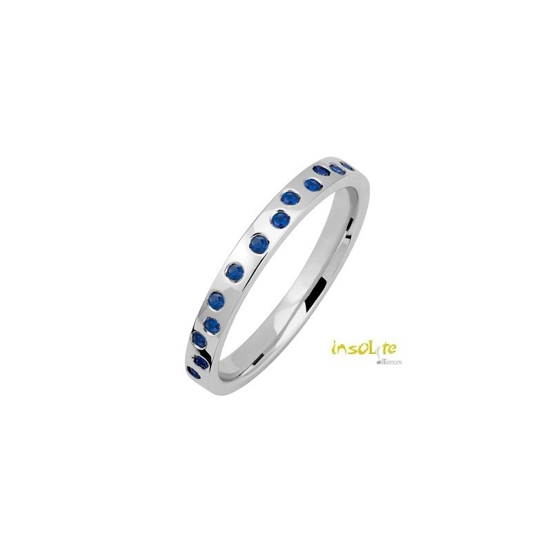 - Alliance femme or blanc 18 carats 750/1000 tour complet saphirs bleus