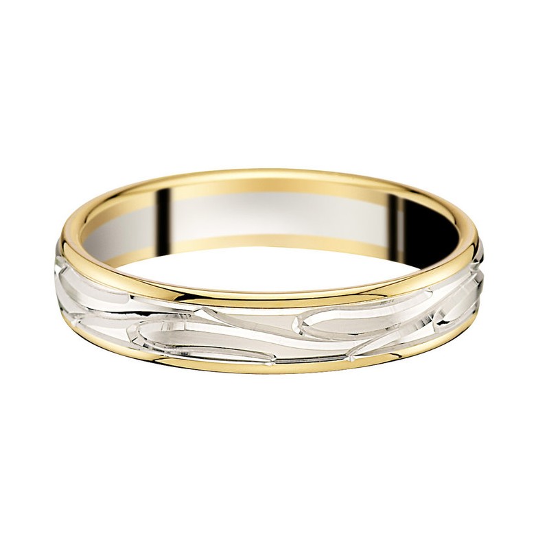 Alliance or 9 carats jaune et blanc confort gravure courbe