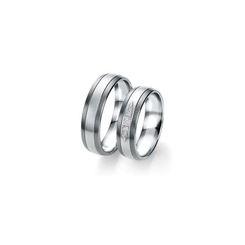 - Alliance bague Duo or blanc et ruthénium 14 carats 585/1000 et diamants 0.071 carats