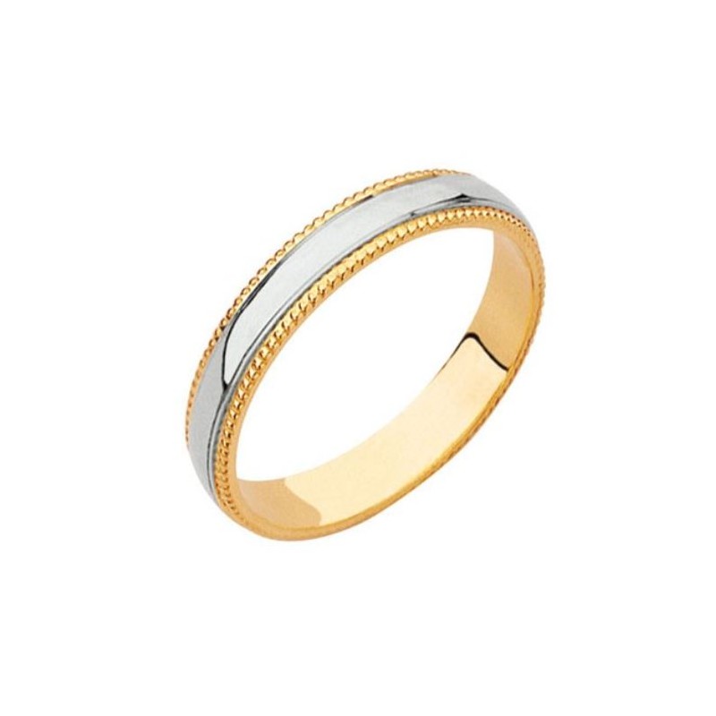 - Alliance de mariage or jaune 18 carats 750/1000 bords perlés et anneau central platine 950/1000