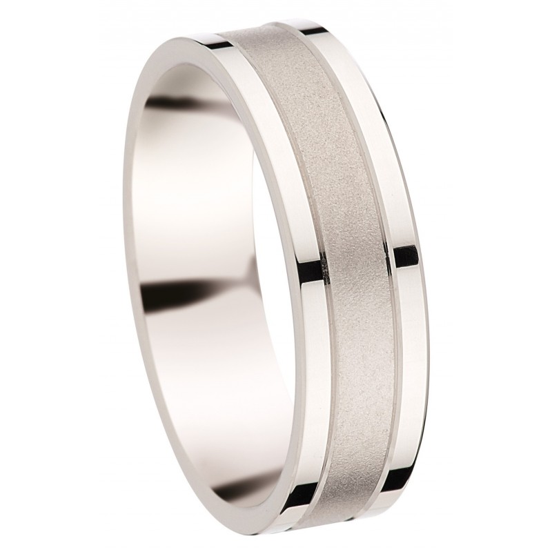 Alliances fantaisie ruban plat sablée liserée polis - Palladium 950/1000