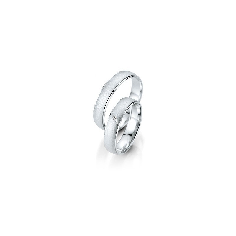 Cette alliance de mariage est composé d'or blanc avec un effet brossé sur le dessus, et un diamant au centre de l'anneau. Toutes nos alliances sont disponibles en or blanc, rose ou jaune, avec ou sans diamant. La forme et le design de votre alliance sont également personnalisables.