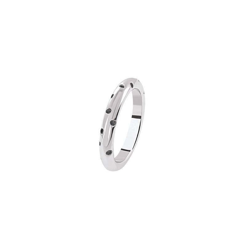 - Alliance bague demi jonc or blanc 18 carats 750/1000 et diamants noirs 0.23 carats