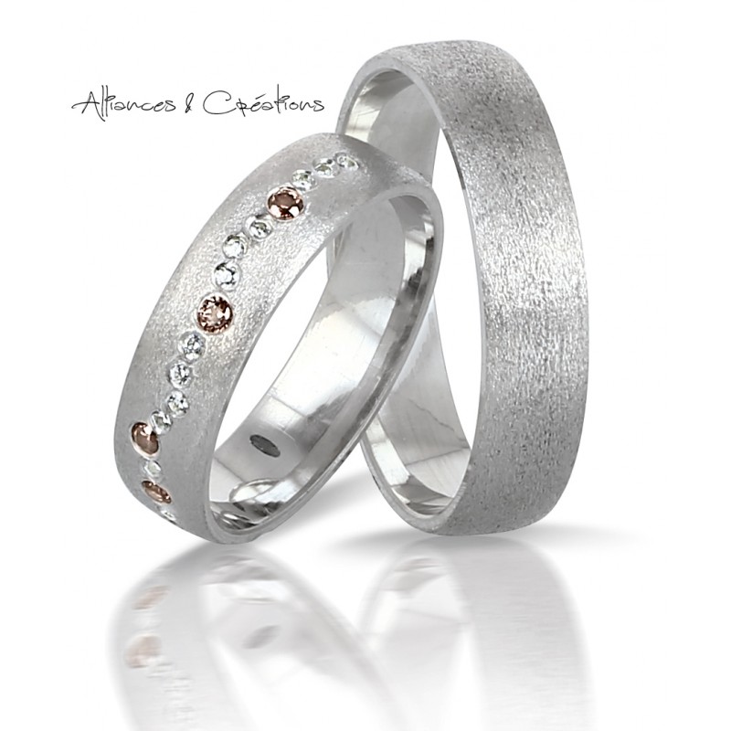 - Bague de mariage or blanc 18 carats 750/1000 diamants blancs et bruns