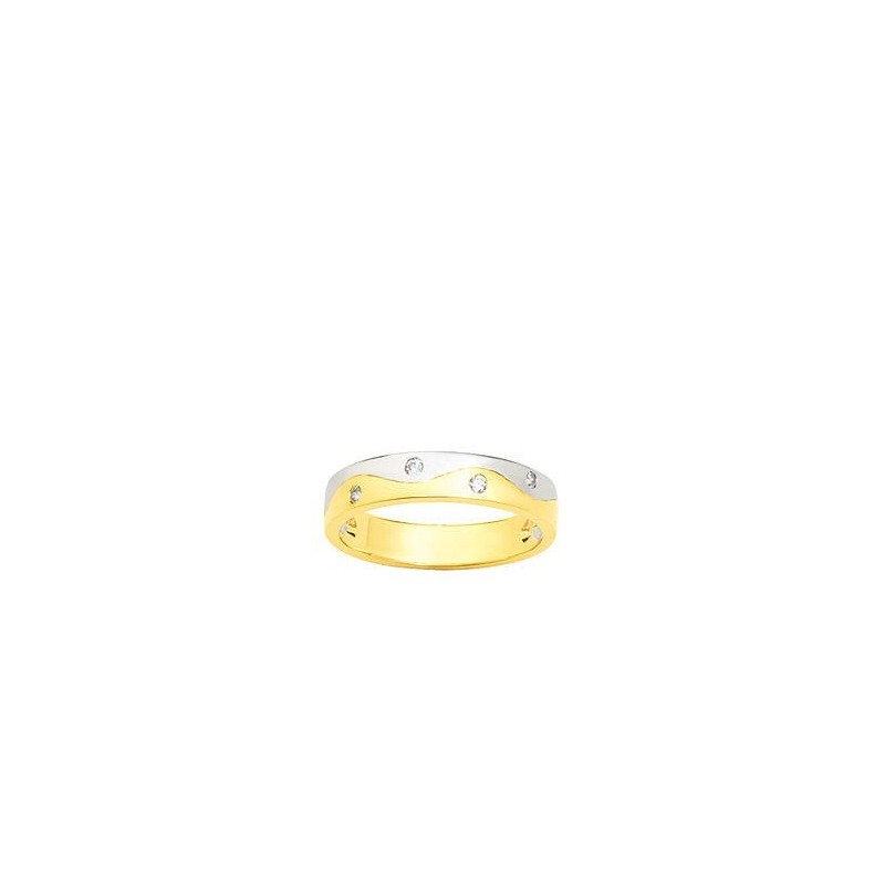 Le créateur GIRARD vous propose une alliance de mariage en or blanc et jaune, avec des diamants. L'anneau se compose au dessus d'or blanc, et au-dessous en or jaune. Une séparation en forme de vague est présente. Toutes nos bagues sont entièrement personnalisables, de l'or au design de l'anneau.