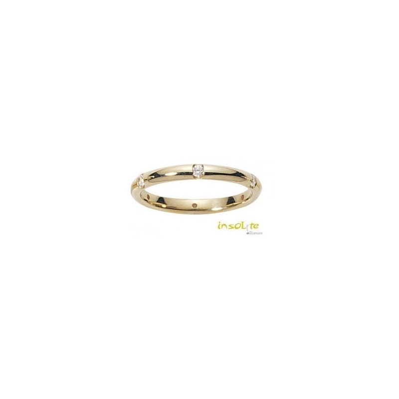 Alliances & Créations vous présente une alliance de mariage en or jaune, avec 6 diamants parsemé autour de l'anneau. Avec Alliances & Créations, plus besoin de chercher la bague de vos rêves, vous pouvez modifier votre future alliance jusqu'à trouver l'alliance qui vous correspond et qui vous plait. Vous pouvez personnaliser la forme, les motifs, mais aussi choisir la couleurs de votre alliance ainsi que les pierres précieuses que vous voulez.