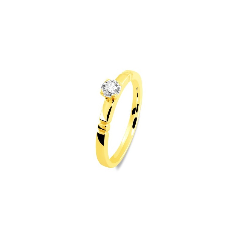 Une merveilleuse bague en or jaune avec un diamant central serti griffe.
