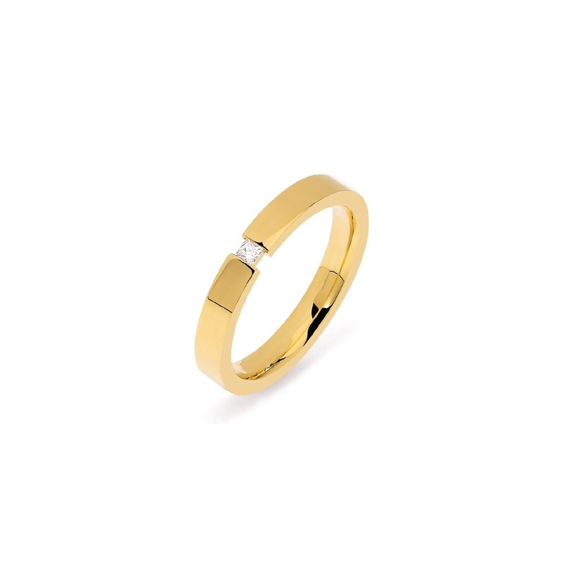Laissez-vous tenter par une alliance de mariage en or jaune accompagné d'un diamant.