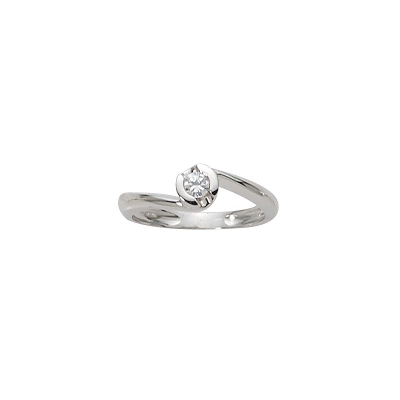Craquez pour ce solitaire composé d'or blanc, avec un magnifique diamant central. L'anneau vient s'enrouler autour du diamant pour former une bague élégante et douce.