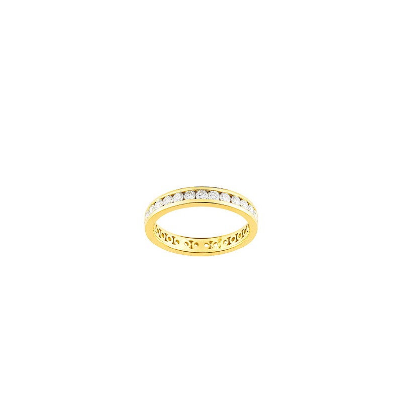 - Alliance or jaune 18 carats 750/1000 tour complet diamants 1.05 carats serti rails